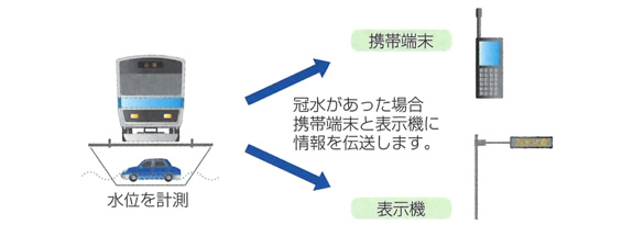 地下道やアンダーパスなど路面が冠水する恐れがある場所に設置し、外部の通行者に対して表示で警告することが主な目的となっています。