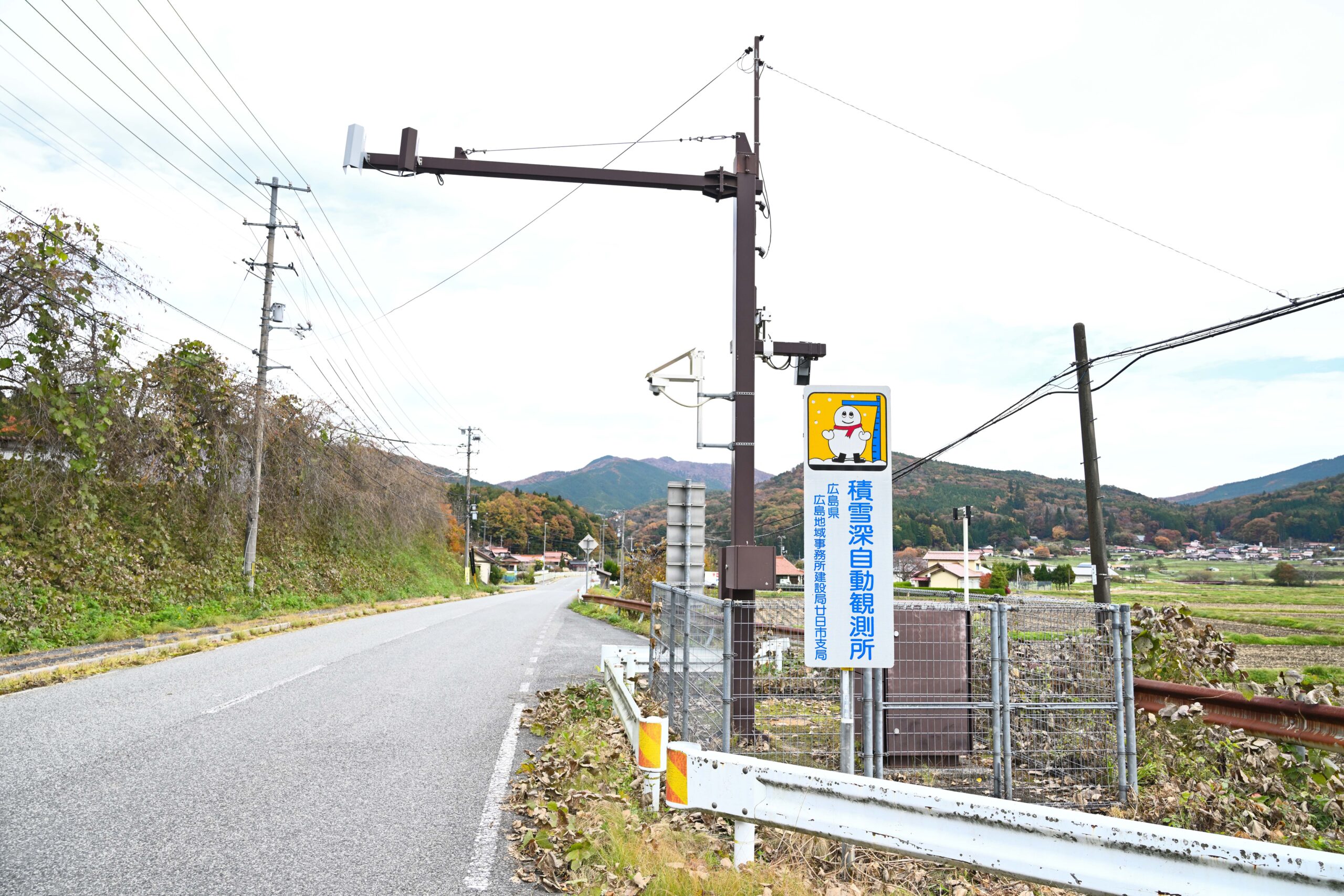 レーザー計で敷地内の降雪深、道路面の圧雪深、その他路面温度と外気温、観測点によっては路面状態を計測し、サーバーが定時周期で各観測所の記録データを収集して管理するシステムです。広島県では、自治体が提供するWEBサイトと連携して積雪データの公開をしています。